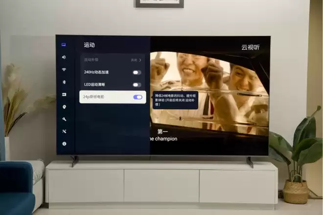 系统方面,除了TCL一 贯的无开机广告、快速启动切换外,我还发现了一个非常实用的功能:24p电影画面补偿。不同于会明显增加画面果冻感和细节抖动的MEMC,这个24p补偿可以在减少果冻感的前提下,弱化24p画面在运动时的闪烁感,对提升大屏观影体验非常重要。