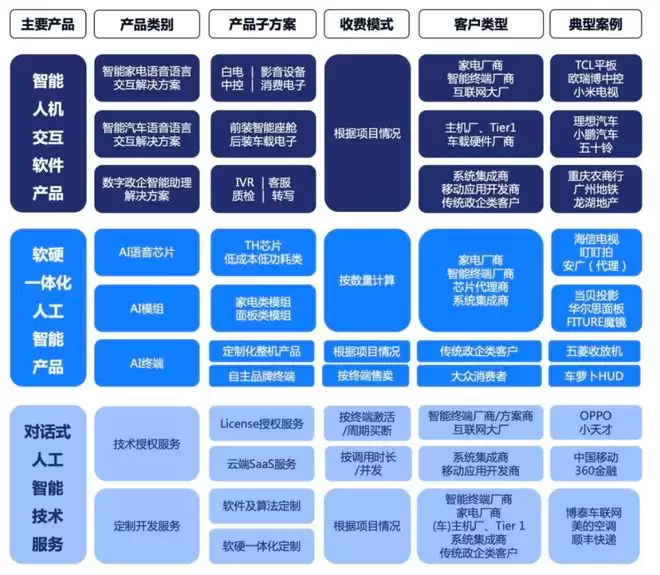 思必驰是聚焦对话式AI的平台型企业,自研DUI全链路智能对话系统定制开发平台以及AI语音芯片,核心业务有对话式AI技术服务、智能人机交互软件产品及软硬一体化AI产品,重点落地智慧汽车、智慧物联、智慧办公等场景。