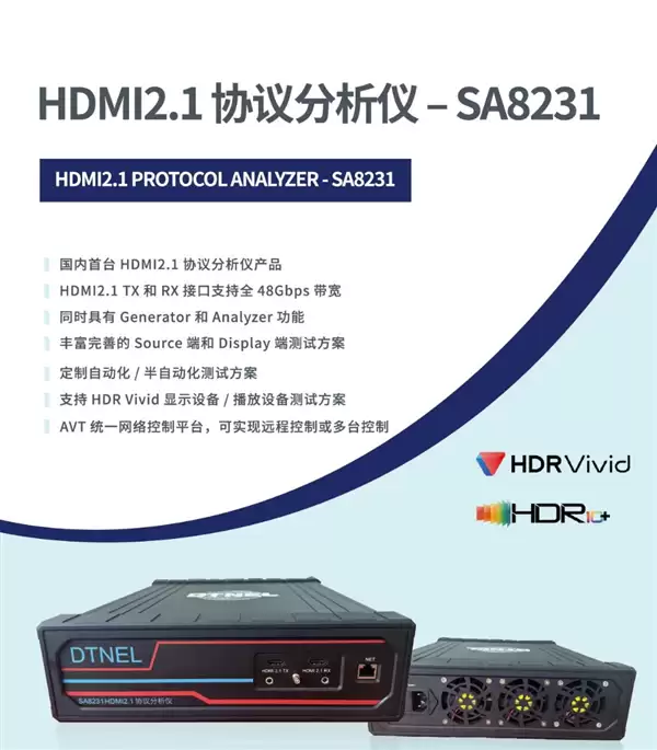 同时,该产品从硬件设计到软件分析系统均实现完全自主知识产权,能完美支持适配国产HDR Vivid标准的源端及终端设备测试需求,其测试方案也完全符合相关测试标准。