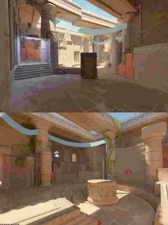 A包点也进行了一些微调,立柱处新增了脚架。木箱被移到了台阶上方,为CT方提供更多掩体选择。
