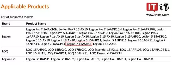 从列表中可以看到一款型号为Legion 7 15ASH11的设备,这是一款15英寸的第11代Legion 7产品。型号中的“ASH”意味着它基于AMD的“SH”系列处理器,而“SH”明显是锐龙AI Max 300系列“Strix Halo”的简称。