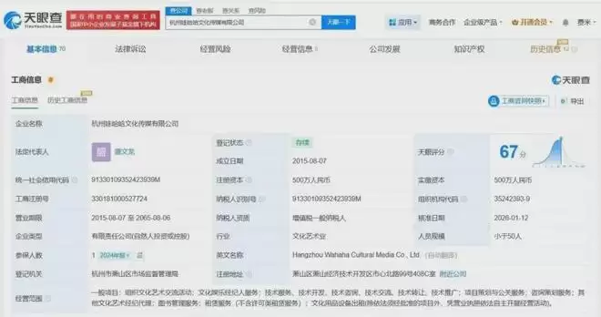 【宗馥莉在杭州成立文化传媒公司】天眼查工商信息显示,近日,杭州凯辰文化传媒有限公司成立,法定代表人为郑群娣,董事为宗馥莉,注册资本100万人民币,经营范围包括广告发布、组织文化艺术交流活动、企业形象策划等。股东信息显示,该公司由杭州宏振投资有限公司全资持股,后者由宗馥莉全资持股。(界面新闻)