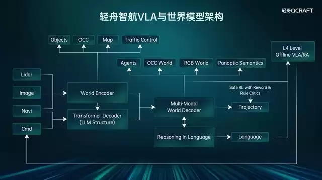 本次发布会上,轻舟正式亮相“VLA+世界模型”统一架构。该架构不仅能复用经过百万量产验证的端到端能力,还能通过语言能力精准理解环境文本、复杂场景与语音指令,实现模型决策、远程接管与人机交互的三重对齐;再借助世界预测模型,精准推演交通参与者行为、道路结构变化与动态场景演进,从而规划出最优行驶轨迹。这一技术将赋予辅助驾驶系统应对现实复杂性的能力,逐步实现行为逻辑泛化推理、物理规律理解、社会常识理解等关键突破,为最终实现L4级自动驾驶奠定基础。