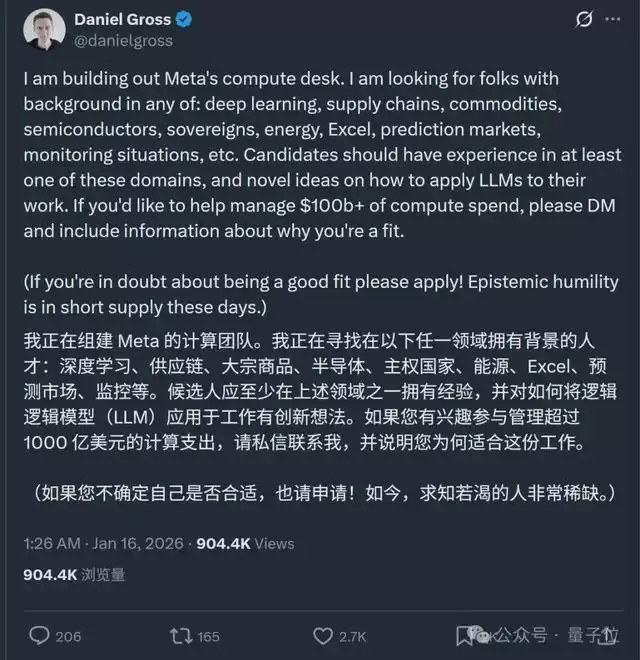 值得一提的是,新项目上马后,Daniel已经火速在为Meta招兵买马了。
