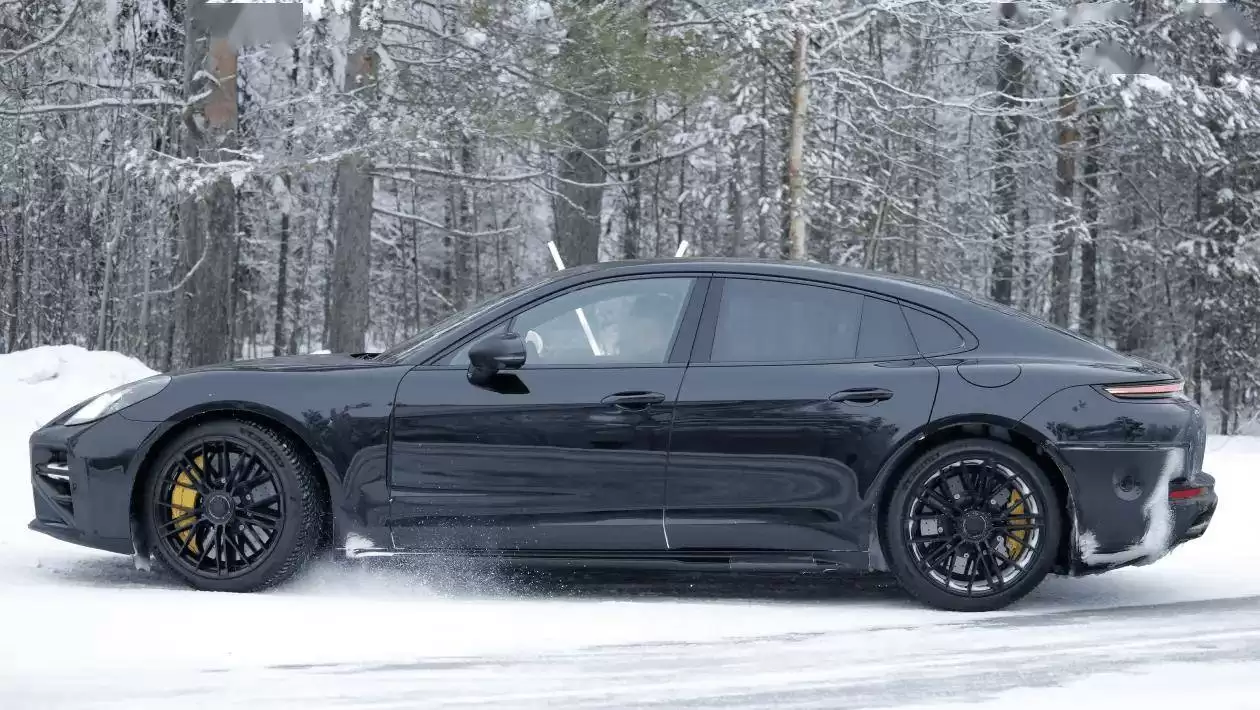 汽车媒体AutoExpress近日曝光了一组关于保时捷Panamera改款原型车的路试谍照,这款经过严密伪装的原型测试车一经亮相,立即引发了外界对其性能定位的广泛猜测。新车在车身左侧新增了充电接口盖板,并采用了Turbo与GT系列标志性的中央锁定轮毂,同时配备了大尺寸碳陶瓷刹车系统。从这些细节特征不难判断,这辆测试车极有可能是一款高性能混动版本,甚至可能是一款超越现款Turbo S E-Hybrid的全新性能衍生车型。
