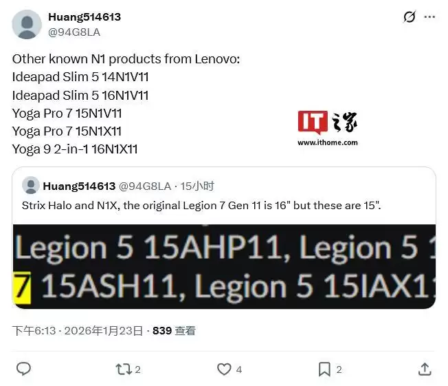 消息源还同步公布了另外五款联想“N1X”及“N1V”笔记型号,它们分属Ideapad和Yoga系列。
