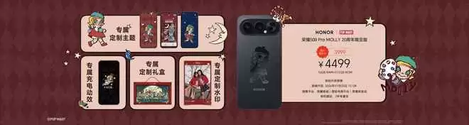 目前,荣耀500 Pro MOLLY 20周年限定版已正式开售,优惠后价格为3999元。