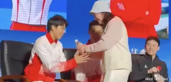 在学长学姐要上台演讲时全红婵还在一边默默为学长学姐递上了水。