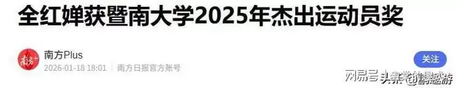 2026年1月18日暨南大学举行了一场表彰大会定睛一看刚入学几个月的全红婵赫然立在领奖台上。