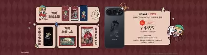 目前,荣耀500 Pro MOLLY 20周年限定版已经正式开售。另外自1月23日起,北京、上海等全国百座城市的主题店与快闪店已同步开启。现场打卡有机会赢取限量周边,购机更赠限定礼盒,欢迎各位前往体验。