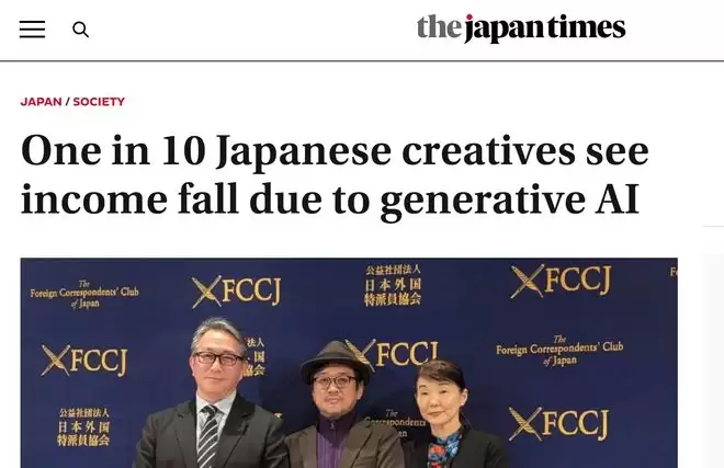 【环球网科技综合报道】1月25日,《日本时报》援引一份最新发布的调查报告称,过去一年间,有超过一成的日本动漫创作者收入出现下滑,这一变化与生成式AI的普及直接相关。报告由日本自由职业者联盟发起,调查显示,高达88.6%的受访者认为生成式AI已对其职业生计构成威胁,行业内部对于加强相关监管的呼声日渐高涨。