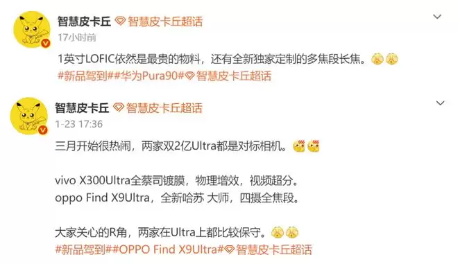 三月还没到,火药味就已经从供应链弥漫开了,从目前手机市场传出的消息,华为Pura 90 Ultra、vivo X300 Ultra与OPPO Find X9 Ultra都要进行发力。