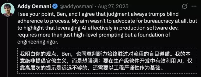 但在Addy Osmani看来,这不是「Vibe Coding」,而是典型的「AI辅助工程」。