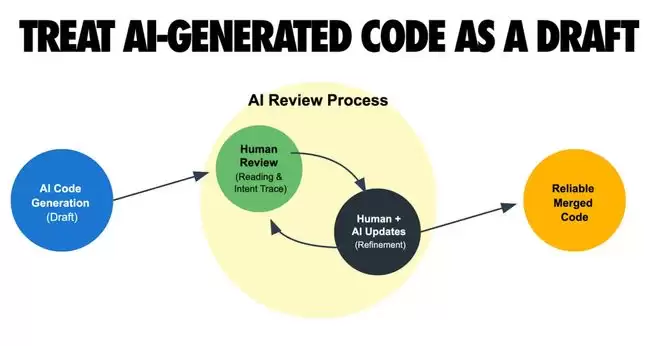 他提出了「AI初稿」模式:AI先出草稿,人类再加测试、提交上线。