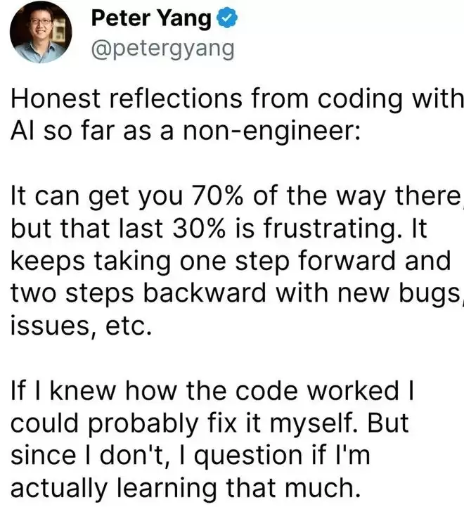 非工程师使用AI进行编程时,往往会遇到一堵令人沮丧的墙