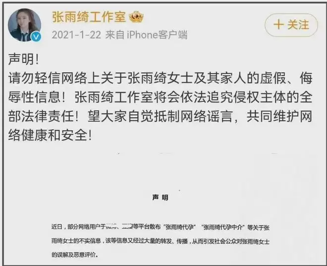 相比较之下,张雨绮的回应就不够及时,只是在2024年发过一条声明,热搜澄清都是很早之前的物料了,连孕照都是经纪人帮忙发的。