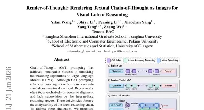 腾讯BAC的研究团队提出了一个革命性的解决方案:既然文字推理如此冗长,为什么不把这些推理步骤"画成图片"呢?这就是他们创新性提出的"思维渲染"(Render-of-Thought)技术的核心思想。这种方法就像把复杂的文字说明书转换成简洁的图解说明一样,不仅保持了原有的信息完整性,还大幅提升了处理效率。