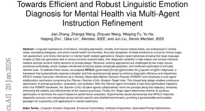 这项研究的意义远不止于技术创新。在心理健康服务日益重要的今天,APOLO为构建更准确、更安全、更高效的AI诊断助手提供了新的可能性。它可以帮助心理健康专业人士更准确地识别患者的复杂情感状态,为及时干预和个性化治疗提供支持。