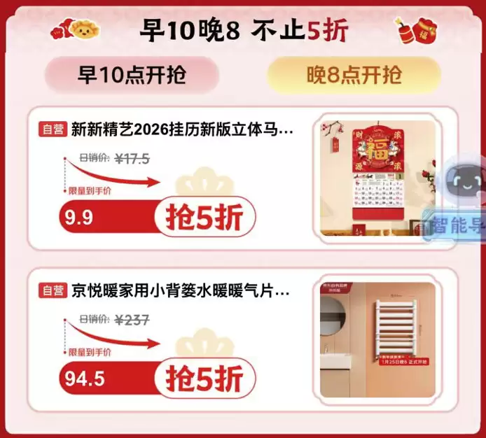 1月25日晚8点京东家电家居爆品直降5折起,多重补贴送到即装