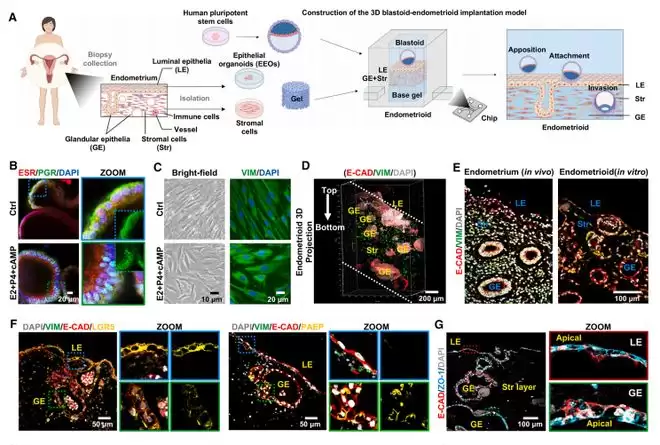 起初,研究团队尝试采用子宫内膜类器官的仿制策略,但由于它并不是 3D 结构,因此与真实的子宫环境存在差异。为构建出与体内环境相似的模拟结构,研究人员使用了组织工程的方法进行尝试。