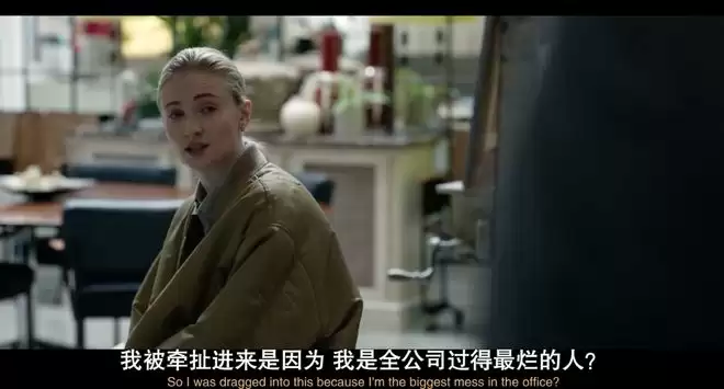 角色层面,剧中重要角色人均阴险、狡诈。以女主为例,索菲·特纳饰演的Zara,并非常见的柔善可欺的职场底层打工人,而是日常消极混日子,关键时刻敢下黑手,玩弄各种阴谋诡计一心想要摆脱被人无视的颓丧表象,从而成为人上人的心机之人。