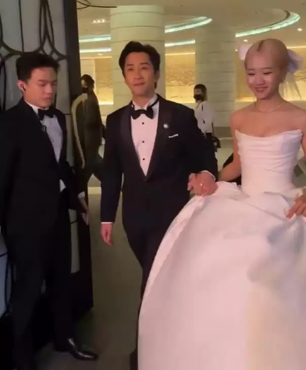 1 月25日晚,陈汉典和lulu黄路梓茵举办婚礼,台北的文华东方酒店热闹非凡。