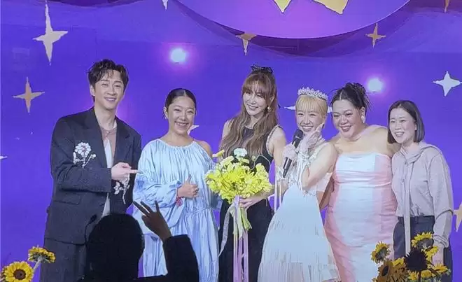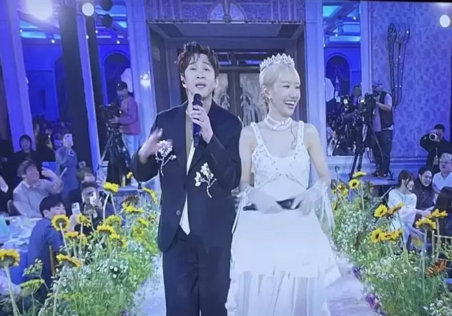 在婚礼进入扔捧花的环节,在台上的曾莞婷拿到了捧花,lulu则是调皮的表示替婷开心,“希望有人好好照顾莞婷姐。”