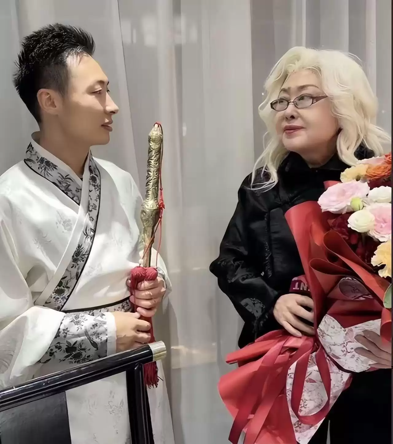 76岁斯琴高娃剧组庆生,白发红唇状态惊艳,走路需人搀扶