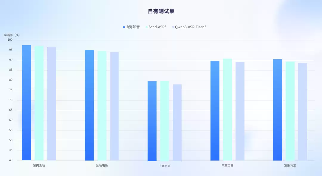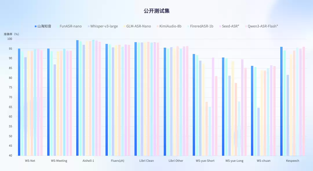 特别是在高难度的复杂噪音与方言口音混合场景下,其性能相比主流ASR模型提升了2.5%至3.6%,而在复杂背景噪音环境下的识别准确率,更是业内首次突破90%大关。