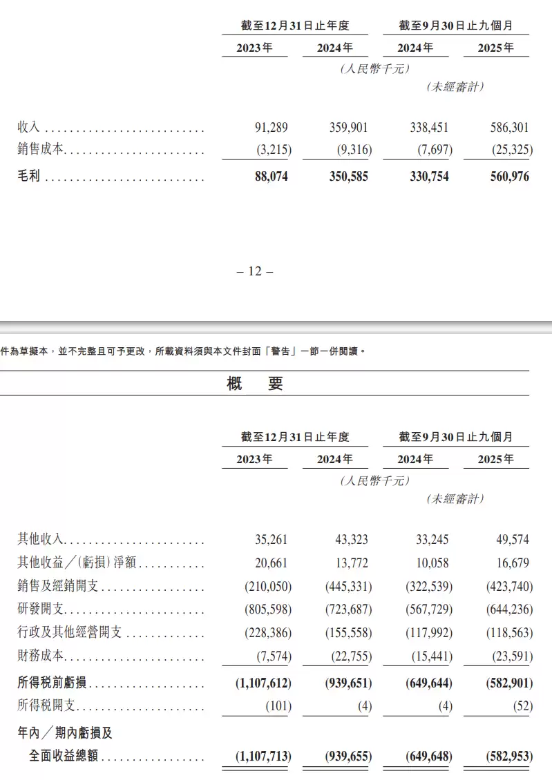 报告期内(2024年至2025年第三季度),迪哲医药的收入分别为9128.9万元、3.6亿元及5.86亿元;同期,公司亏损及全面收益总额分别为11.08亿元、9.4亿元和5.83亿元。