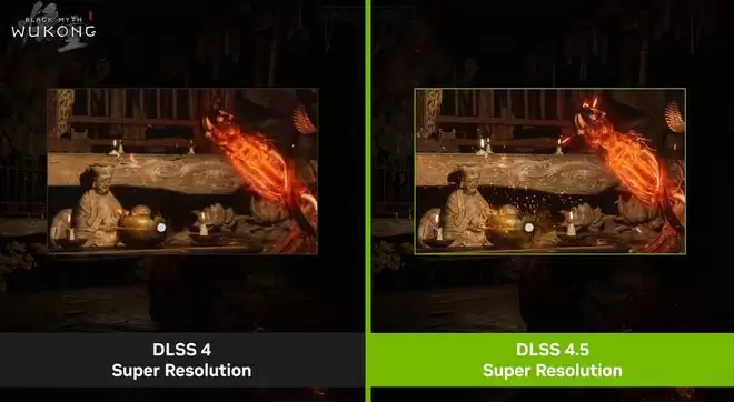 DLSS 4.5引入全新的第二代Transformer模型能更智能地利用游戏引擎的像素采样与动态技术,在画质、拖影上有着非常大的升级,显著减少鬼影效果和闪烁粒子,呈现出更精细、更准确的光线与图像。按照NVIDIA的说法,本次重点提升在于性能模式与超级性能模式,开启后,在性能模式下就能享受媲美原生画面的体验,快速移动的物体也能保持清晰度,而超级性能模式也进行了优化,实现了更清晰的锯齿效果,减少鬼影并增强时间稳定性。