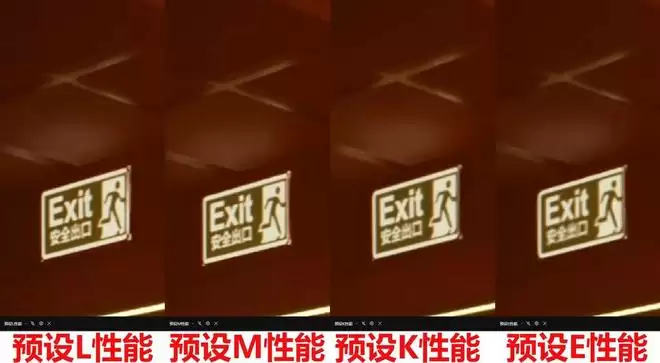 可以看到,三代超分辨模型之间在画质上的确有不小的区别。第二代Transformer模型的细节和清晰度最好,能够保留更多的画面细节和纹理,室内的安全出口标志、远处的广告牌、文字等都有着很好的细节表现,其中L预设即使是超级性能的画面都十分接近一代Transformer模型的性能预设;第一代Transformer模型次之,细节表现不错和新模式的差距主要在锐度上;CNN模型的画面最模糊,并且存在明显的细节缺失,远景只能看出个轮廓没有细节。