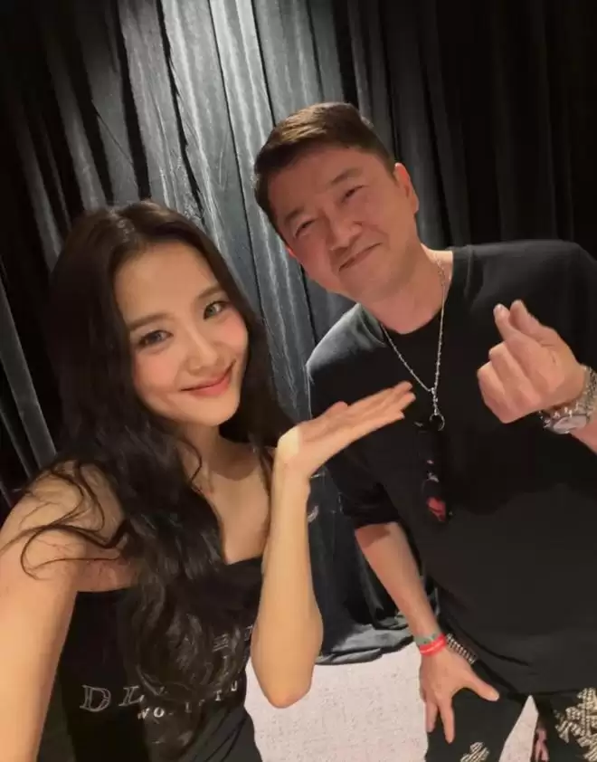 甘比、邱子杰和邱李茂琪现场合影。值得一提的是,甘比、邱子杰还和Blackpink成员金智秀在演出后台自拍了,别提多开心了。