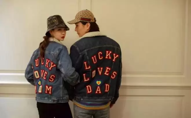 需要指出的是,李承铉和戚薇穿的牛仔外套是2019年定制的。当时,他们的工作室在社交账号上分享过照片,其中,李承铉那件的背面印有英文字母“LUCKY LOVES DAD ”,戚薇那件的背面印有英文字母“LUCKY LOVES MOM”。众所周知,LUCKY是他俩女儿的英文名,寓意不言而喻了。话说,趁着Seven不认字,这件外套还能再穿几年,哈哈哈。