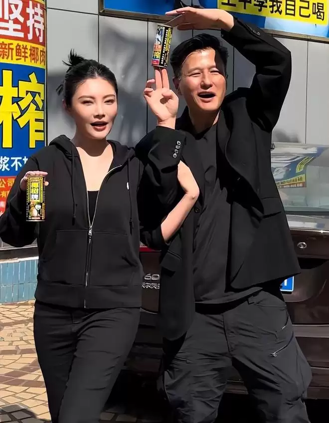 他们夫妻还抵达椰树公司楼下,为产品做了一波宣传。