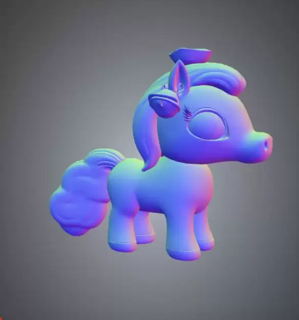 promtps:Ultra-cute chibi-style horse, extremely rounded and squishy proportions, oversized head, tiny chubby body, short stubby legs, big sparkling eyes with highlights, tiny round snout, cheerful smile, tiny blushing cheeks, short rounded ears, fluffy mane and tail, smooth and soft surface, bubble-toy collectible style, playful and adorable, simplified cartoon details, optimized for 3D printing
