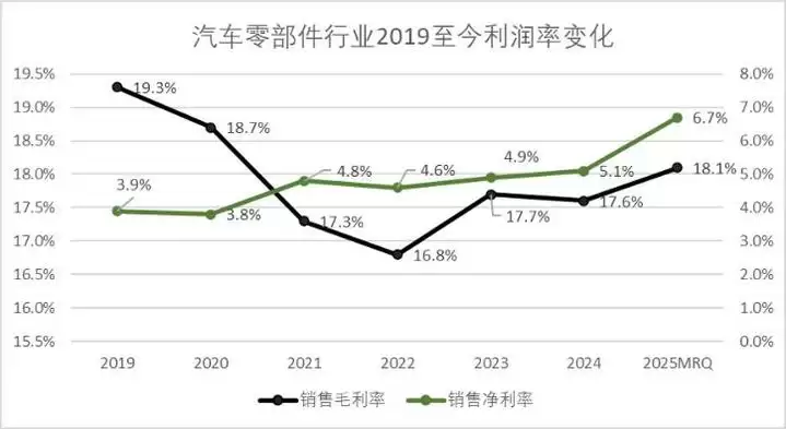 图:汽车零部件行业2019至今利润率变化,来源:企业财报