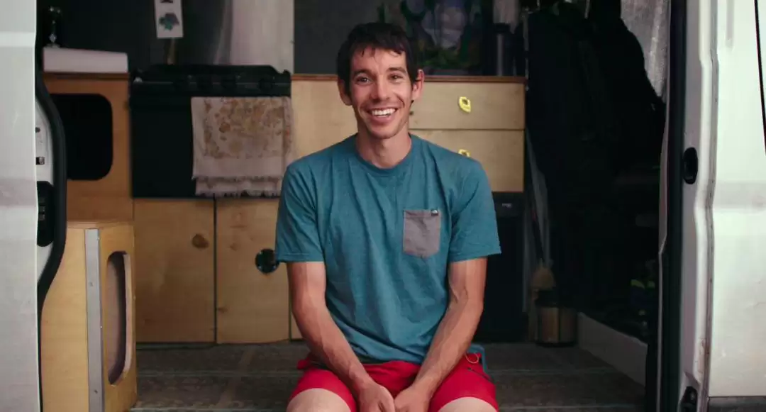 《徒手攀岩》没有刻意将亚历克斯塑造成一个离群索居、性情怪异的异类。年过三十的他相貌平平,身材中等,肌肉线条清晰,虽然自称怪人,单独住在面包车里,过着极简主义的生活,但与人相处时谈吐自然,偶尔还会开个玩笑。他也建立了自己的基金会为贫困地区捐款,大体还是善良普通人的样子。