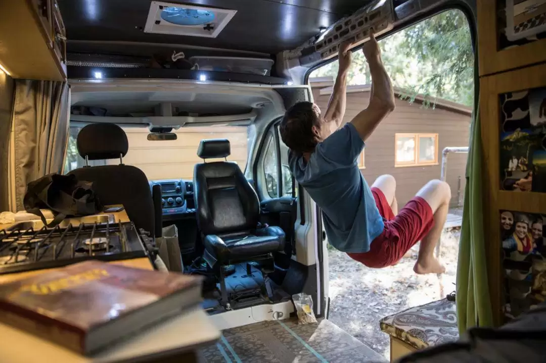 Alex Honnold住在优胜美地的时候每天都在房车里面健身