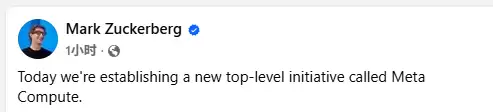 当地时间1月12日(周一),扎克伯格在其社交媒体账号上发文公布了这一消息。他写道:“今天我们正式启动了一个名为‘Meta Compute’(元计算)的全新最高级别战略项目。”