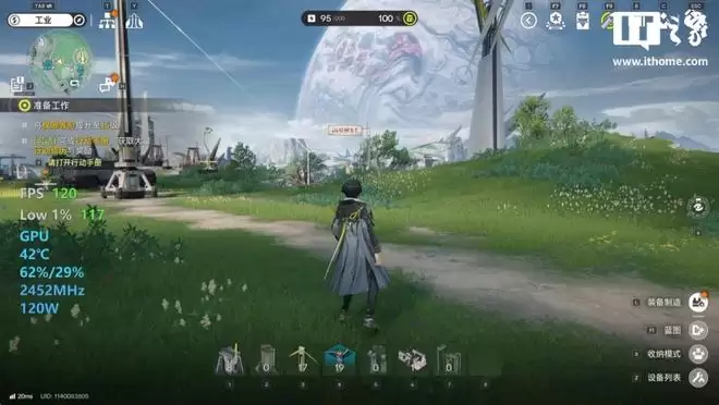 作为一款 3D 即时策略 RPG 游戏,《明日方舟:终末地》不仅有着地图探索的部分,也有着细节丰富、场景炫酷的打斗场景,IT之家同样测试了在打斗场景下的游戏表现。在 DLSS 性能,不开启帧生成的设置下,在协议空间中的战斗场景,帧率可以稳定在 120 帧。