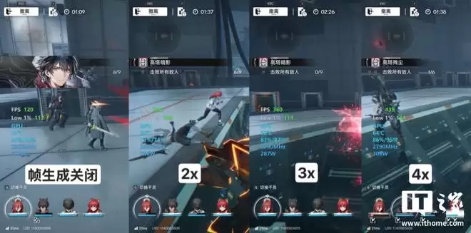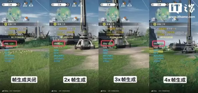 可以说,DLSS 4 多帧生成对游戏体验的提升还是非常巨大的,基本按设置对应实现了帧率 2 倍、3 倍、4 倍的提升,而显卡功耗增加最高仅有约 70%。