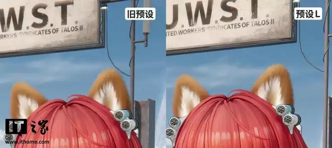 秋栗头饰的纹理也更加清晰,对比下,开启预设 L 前,画质稍显模糊。