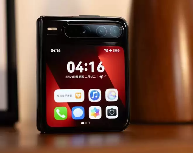 最离谱的改动在于外屏位置,它不在正面而是被挪到机身背面(也就是原来后摄模组的位置),这意味着你合上盖子时,背面是一块完整的屏幕,可以用后置镜头自拍,或者当一块纯粹的信息窗。