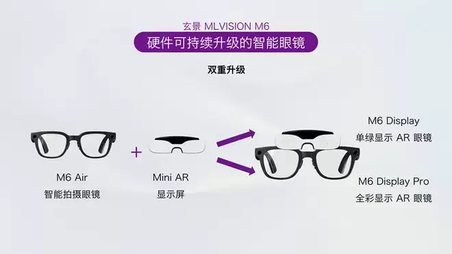 IT之家 1 月 17 日消息,微光科技旗下玄景 MLVision 在 CES 2026 上推出了首款硬件可持续升级 AR 眼镜 M6。其采用模块化设计,由核心 AI 摄像眼镜和可选的显示模块单元组