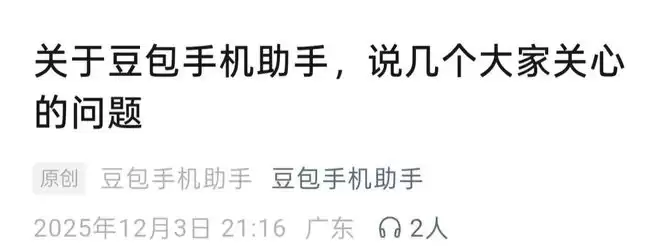 去年12月3日,豆包手机助手曾发文称,多家媒体联系我们,表示有科技公司爆料“豆包手机助手存在侵犯用户隐私”的问题。