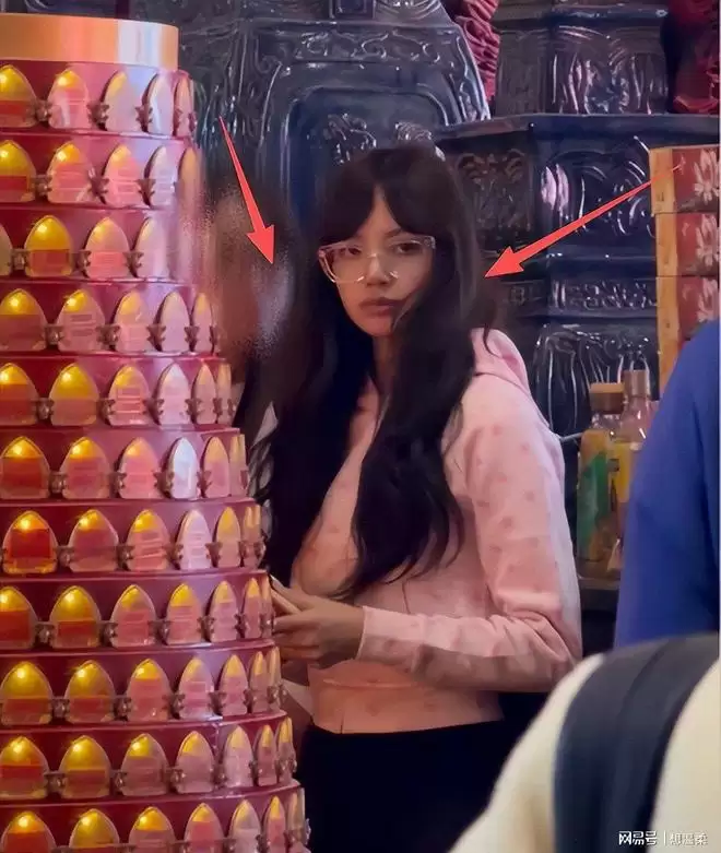那个站在香炉前低头上香、素颜戴眼镜的女生,竟然是前两天还在启德主场馆炸场的Lisa?这反差也太大了。