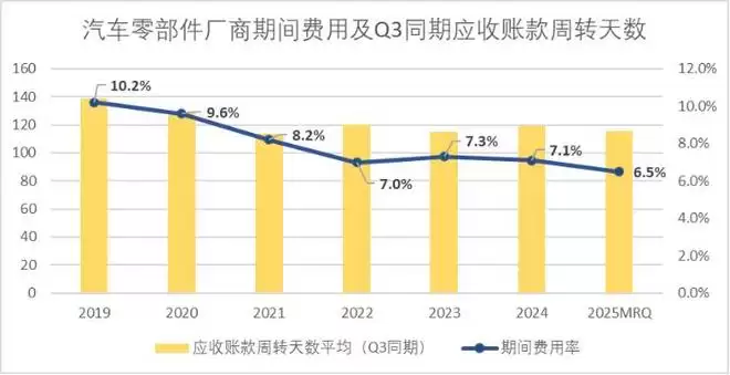 带动净利率增长最为明显的就是反内卷的成效,去年轰轰烈烈的60天账期承诺,以及工信部开通的车企账期维权渠道,实打实带动了车企账期的下滑,以三季度同期来看,2025年较2024年平均应收账款周转天数下降5天。