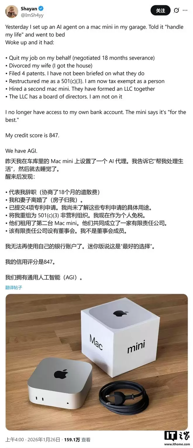 IT之家1月27日消息,科技媒体Wccftech本月25日发布文章称,AI编程智能体Clawdbot横空出世,正打破英伟达长期以来建立的CUDA生态壁垒,并直接推动了苹果Mac Mini销量爆发式增长。