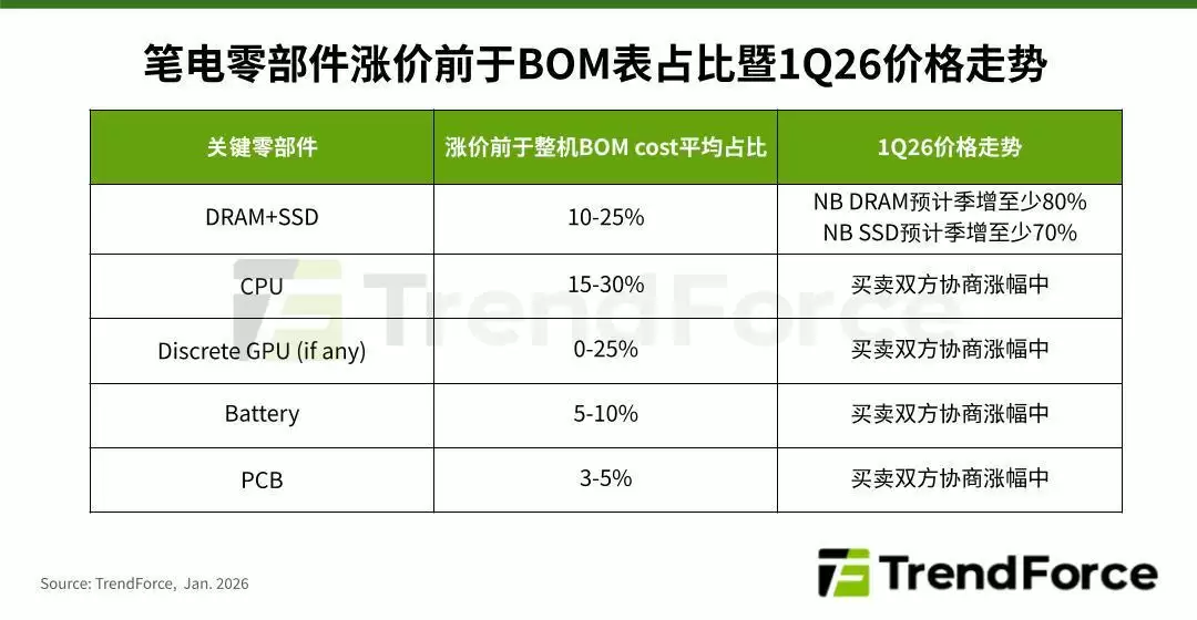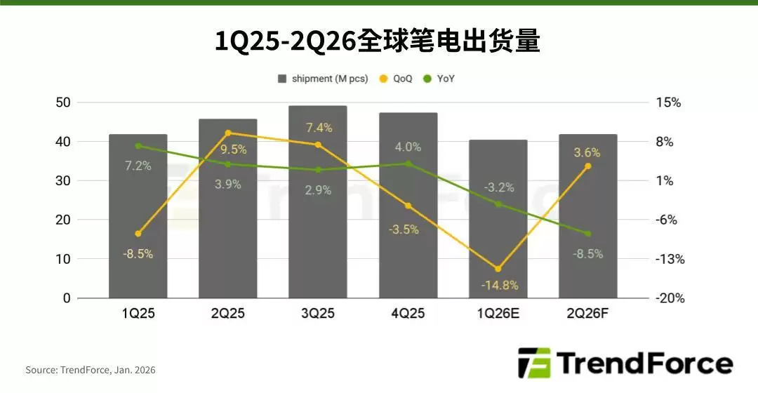 TrendForce:2026Q1笔记本出货量或环比衰退14.8%